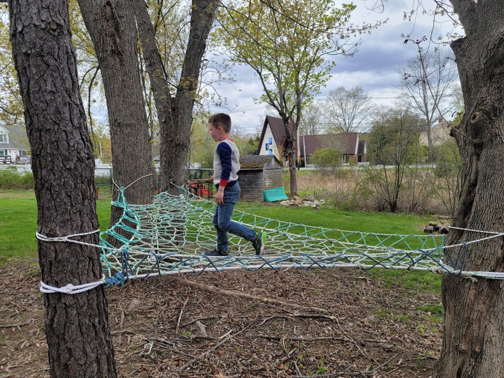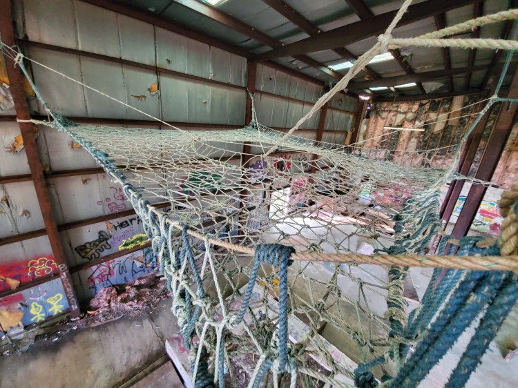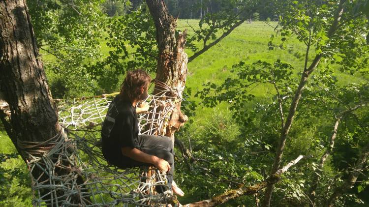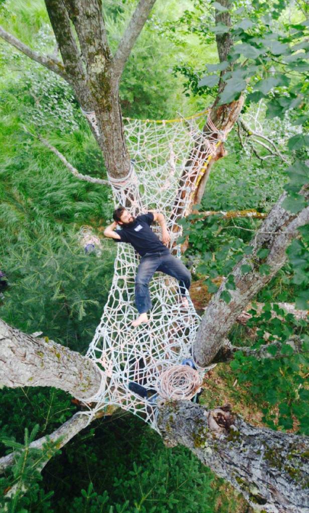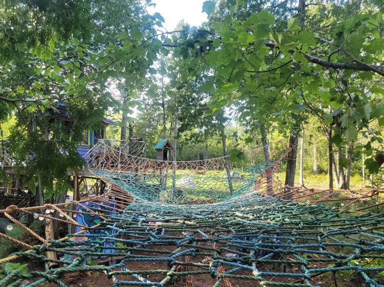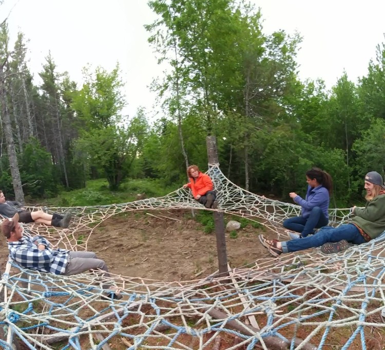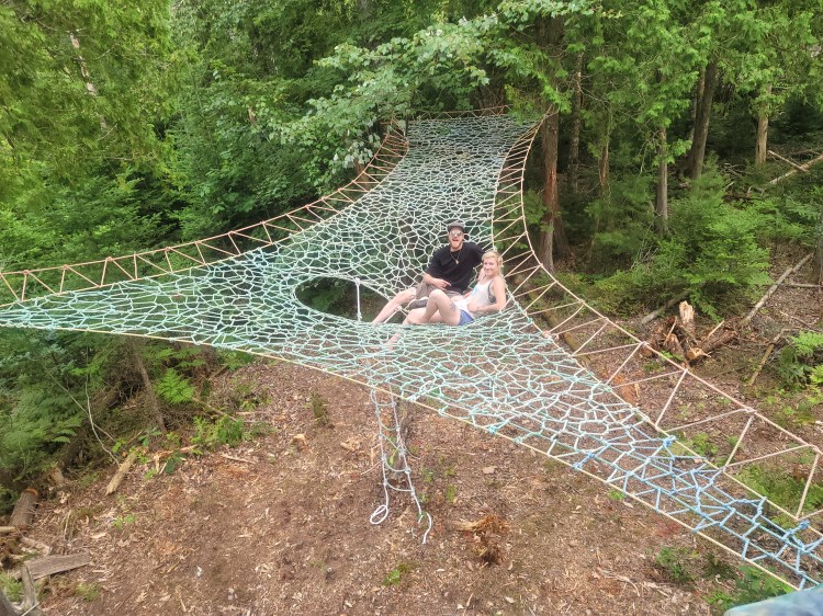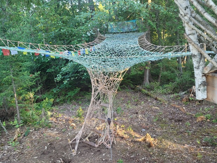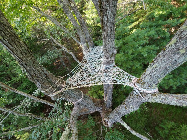 Built with recycled lobster boat rope, these tree web installations are strong enough to support enough people to cover the whole surface area and are durable through all seasons. (Contact for commission.)